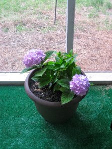 This summer I decide I would try my hand at a little gardening. My mother and grandmother are fabulous in this area, I was praying I inherited their green thumb. I used to hate it but now that I am older and I really wanted some pretty plants on our screened in porch. So I decided to give it a try and off to Lowes I went. I started off with a few ivy plants and geraniums. Then for our anniversary Bob bought me some impatients and a hydrangea plant (which is my favorite flower). I also planted some herbs which have been wonderful especially the sweet basil.