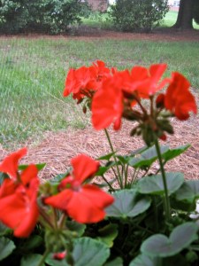 The geraniums and ivy