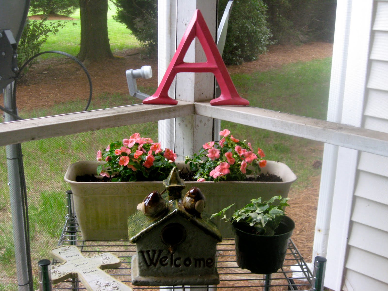 My escape is our screened in porch. We recently got some new chairs and I bought some fabric to make some pillows and such for the outdoor space. I can not wait for fall so that it is a little cooler and I can enjoy being out there longer than these hot days. For most of the summer these flowers were beautiful but sadly I think combined with the intense heat and possible overwatering they are not as pretty now but for a while I had my first little flower “garden”. I really enjoyed my fist gardening expirience but sadly I am not sure I inherited the wonderful green thumb. We will see next year.