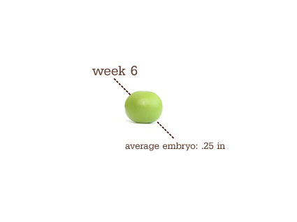 “This week’s major developments: The nose, mouth, and ears that you’ll spend so much time kissing in eight months are beginning to take shape. If you could see into your uterus, you’d find an oversize head and dark spots where your baby’s eyes and nostrils are starting to form. His emerging ears are marked by small depressions on the sides of the head, and his arms and legs by protruding buds. His heart is beating about 100 to 160 times a minute — almost twice as fast as yours — and blood is beginning to course through his body. His intestines are developing, and the bud of tissue that will give rise to his lungs has appeared. His pituitary gland is forming, as are the rest of his brain, muscles, and bones.”