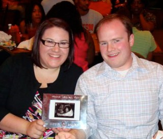 The secret is officially out we told both sets of families on Saturday October 2. Bob and I arrived in town and met both of our families at Blackbeard’s. The restaurant choice was mine and not a very good one being that I was car sick the whole way down and it is a seafood place. Despite the nausea I was able to eat and enjoy dinner. I spent months thinking how I was going to tell them and Bob really wanted to tell everyone together. Back in September I found really cute grandparent-to-be cards around Grandparents Day so I got one for each grandparent and great grandparent. We arrived at dinner and not to long after sitting down we gave the cards out. I would not have traded the expressions on their face for anything it was totally worth waiting to tell them. The card did not mention one little detail, that we were having twins. So as the shock began to settle a little I pulled a frame from my purse that said “Thanks heaven for little babies” and it held a picture of our sonogram of the twins. They were stunned!