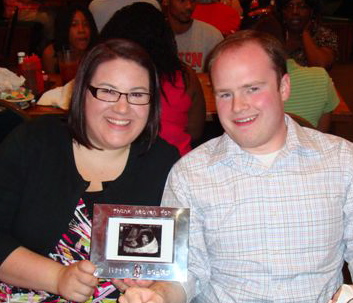The secret is officially out we told both sets of families on Saturday October 2. Bob and I arrived in town and met both of our families at Blackbeard’s. The restaurant choice was mine and not a very good one being that I was car sick the whole way down and it is a seafood place. Despite the nausea I was able to eat and enjoy dinner. I spent months thinking how I was going to tell them and Bob really wanted to tell everyone together. Back in September I found really cute grandparent-to-be cards around Grandparents Day so I got one for each grandparent and great grandparent. We arrived at dinner and not to long after sitting down we gave the cards out. I would not have traded the expressions on their face for anything it was totally worth waiting to tell them. The card did not mention one little detail, that we were having twins. So as the shock began to settle a little I pulled a frame from my purse that said “Thanks heaven for little babies” and it held a picture of our sonogram of the twins. They were stunned!