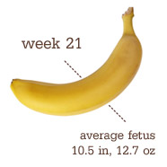 Size of our babies: Our twins are the size of bananas this week. (Which seems smaller than a cantaloupe but they say it is based on their length)