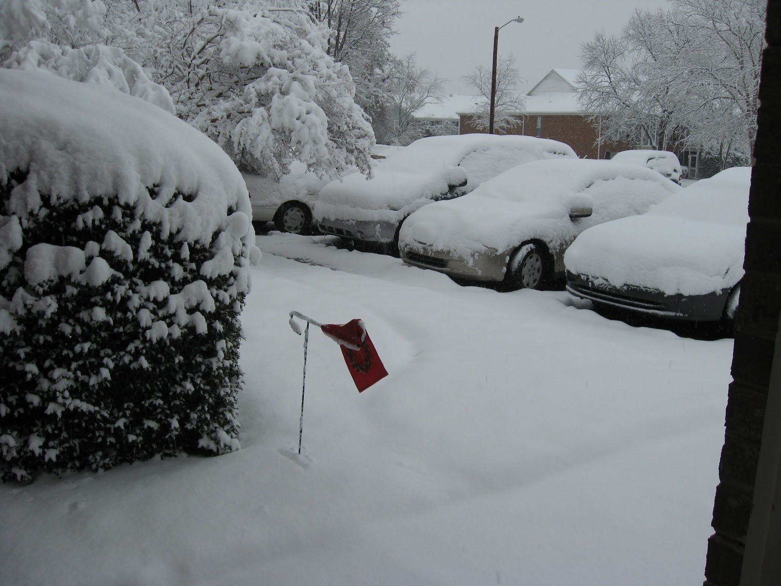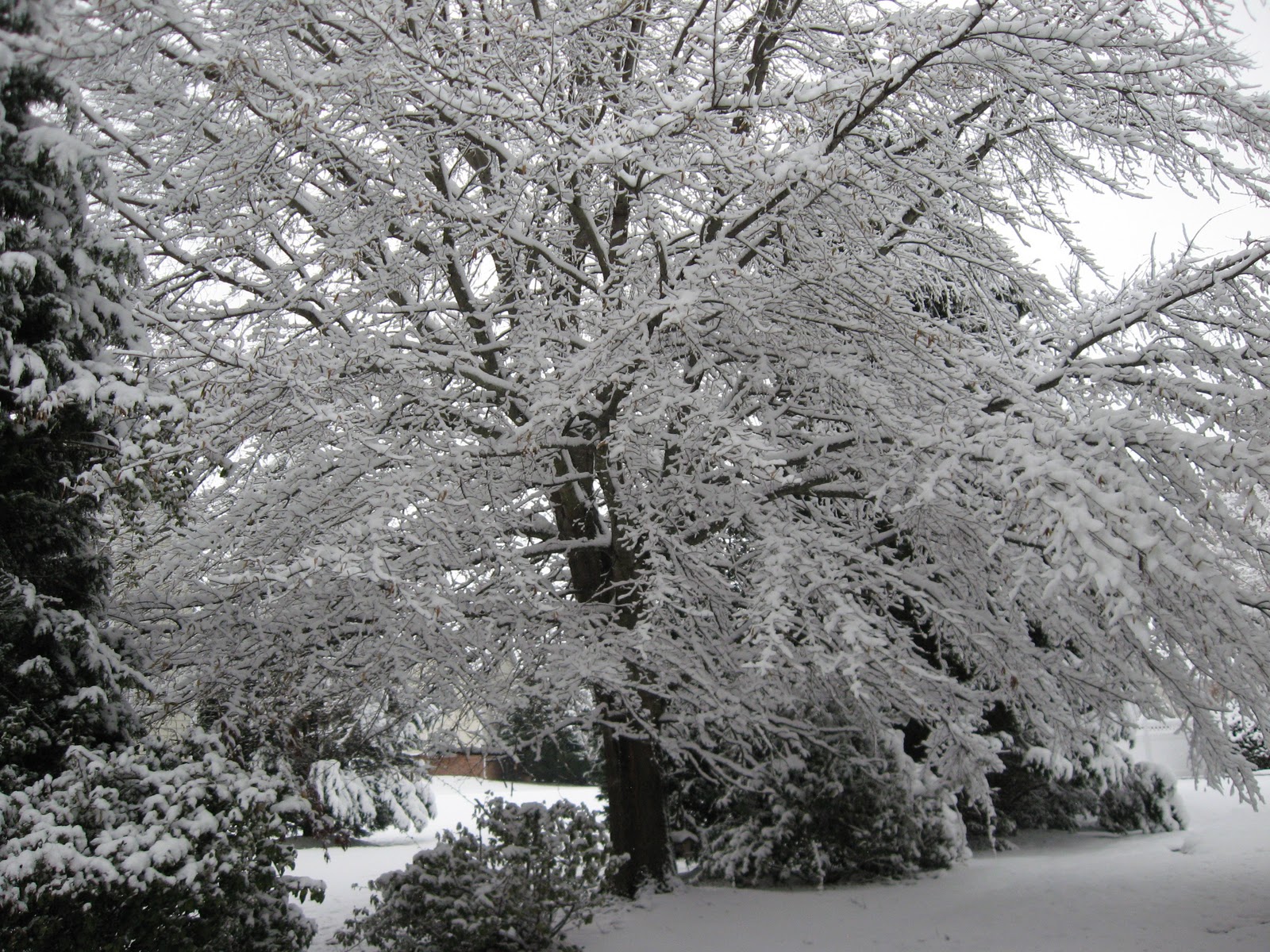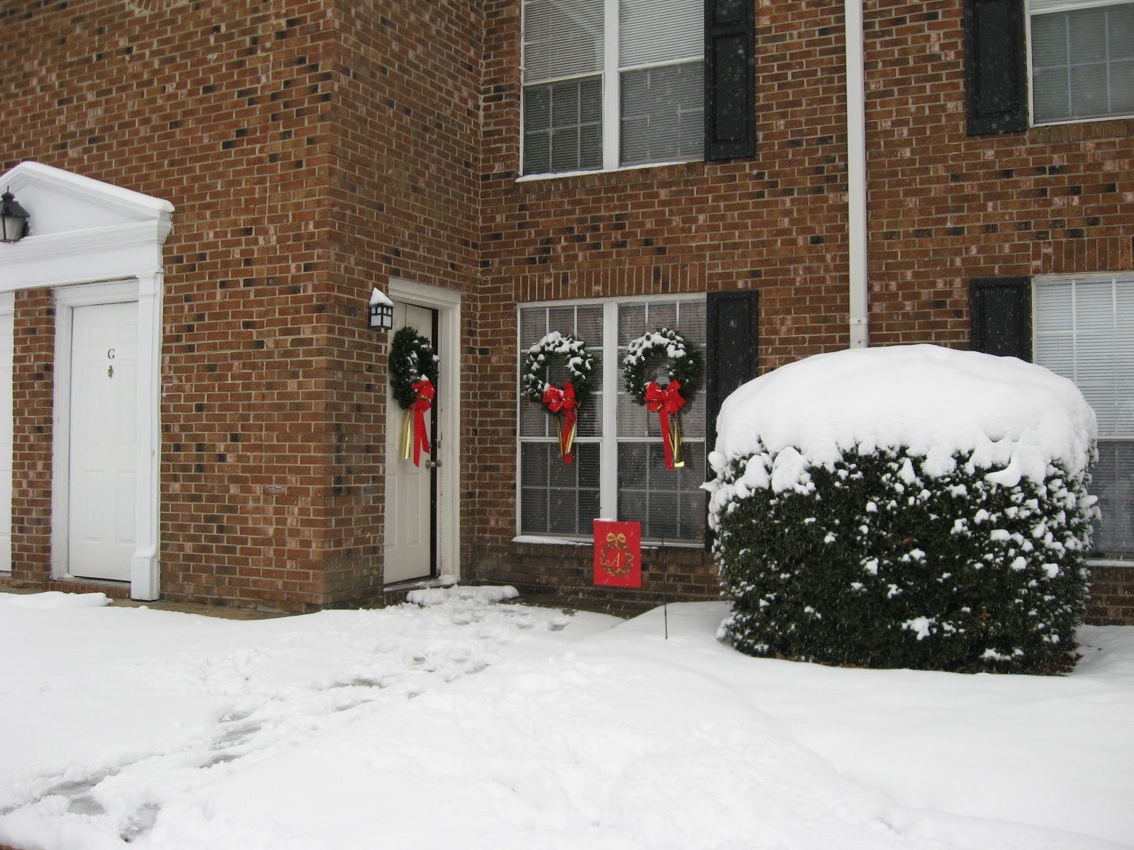 It was a white Christmas night. Last night it began to snow. The snow kept falling throughout the night and the prediction was for us to get about 2-3 inches. We woke up this morning to a Winter Wonderland. When I measured the ground we had 7 inches and it was still falling. It has been flurrying off and on for the day. It is just beautiful.